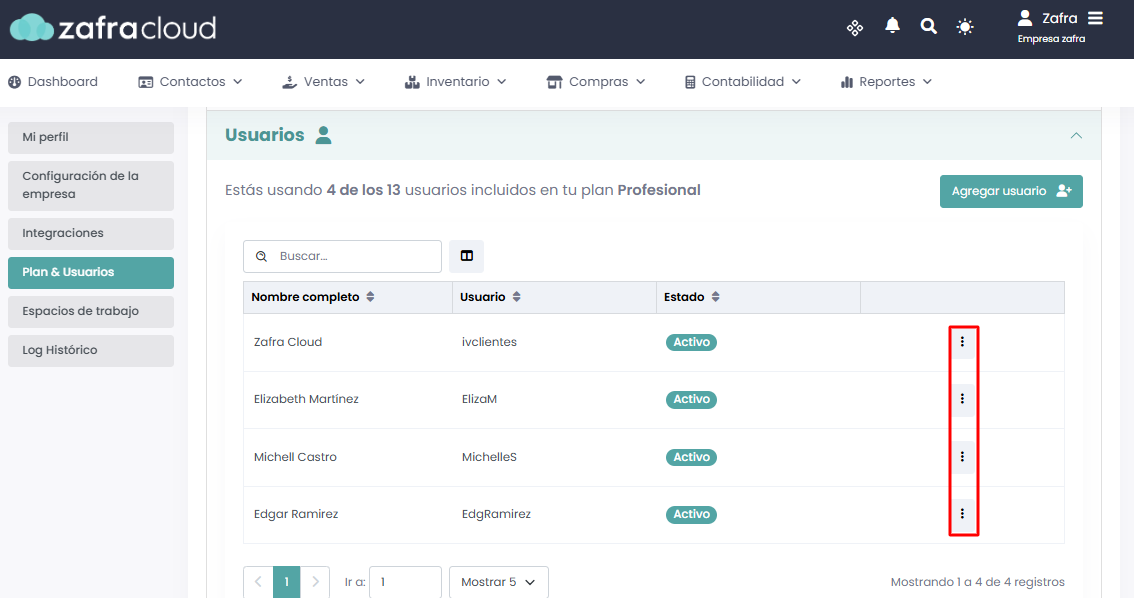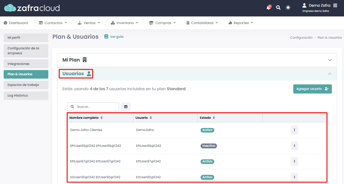 Ingresar a Configuracion ⇾ Plan & Usuarios