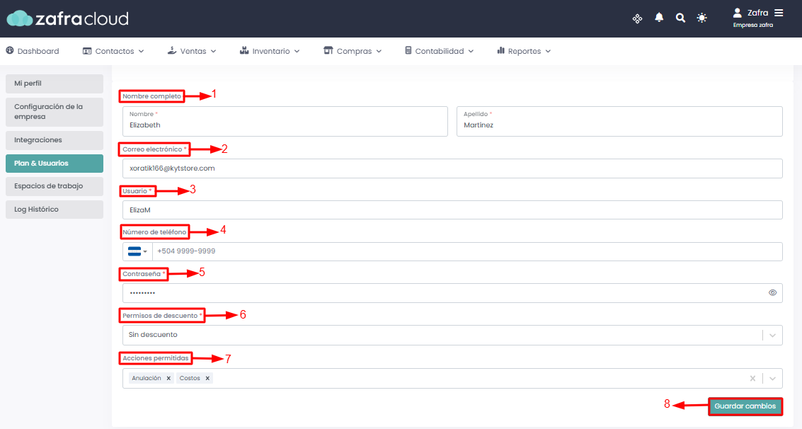 Correo electrónico: Debe ser un correo que aún no se encuentre enlazado a un usuario de Zafra Cloud.
