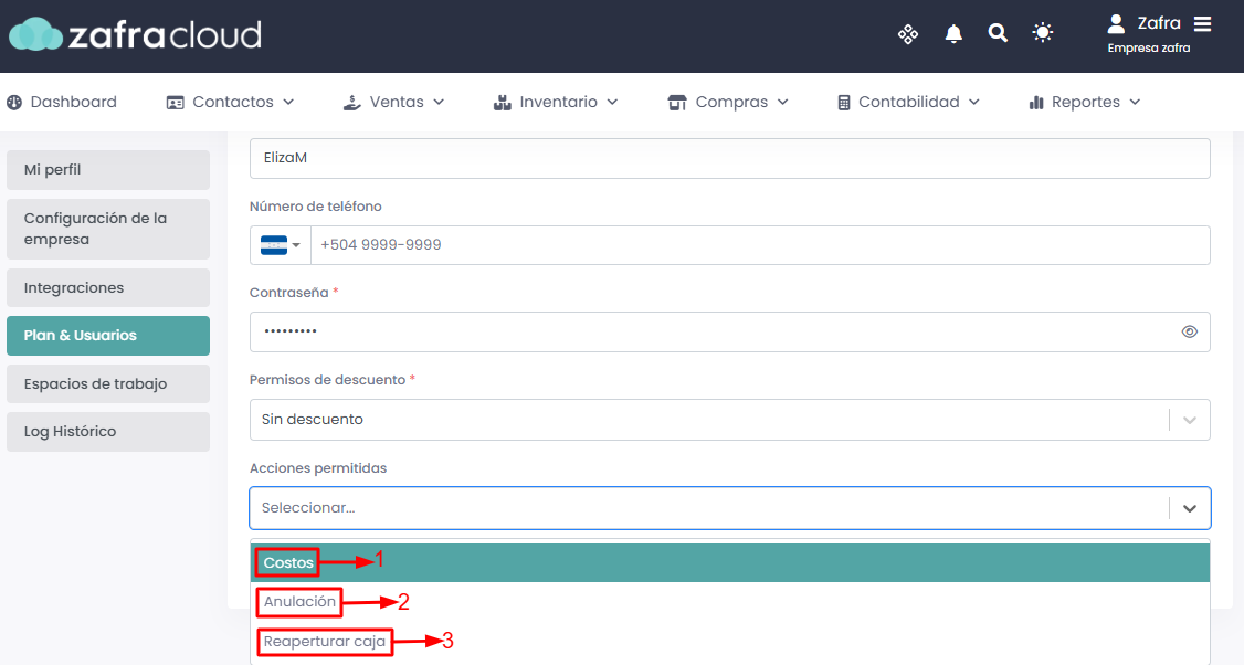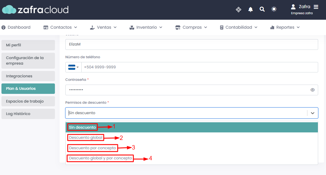 Permisos de descuento: Podrás asignarle un descuento autorizado a los usuarios según tus necesidades.