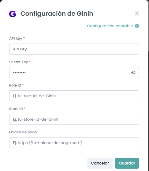IMPORTANTE: Antes de iniciar la configuración correspondiente de tu pasarela de pago, deberás ponerte en contacto con un agente de GINIH para que tu cuenta sea activada.