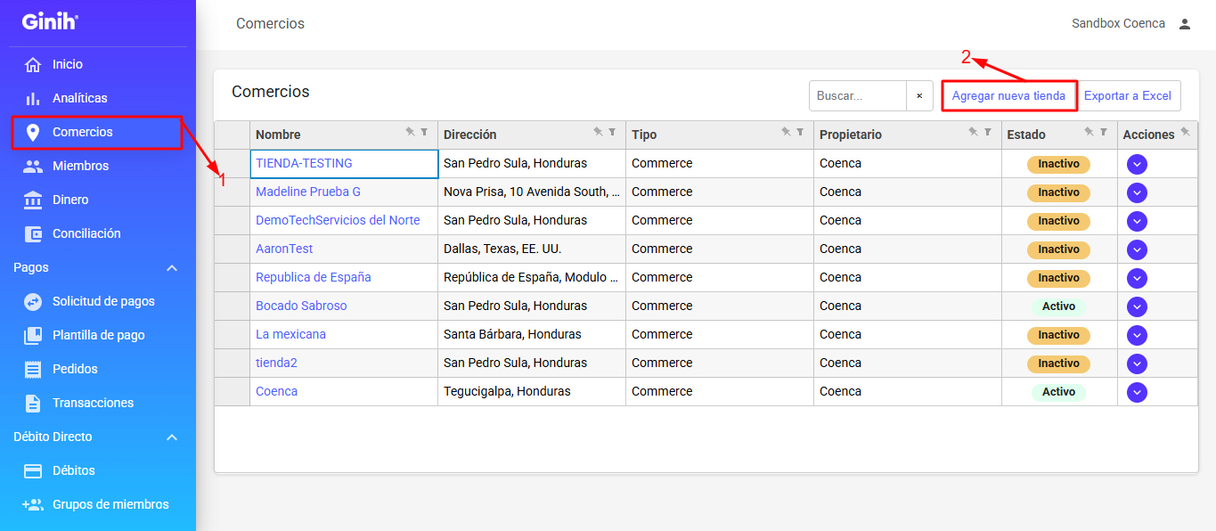 Nos iremos a Comercios, luego “Agregar nueva tienda”.