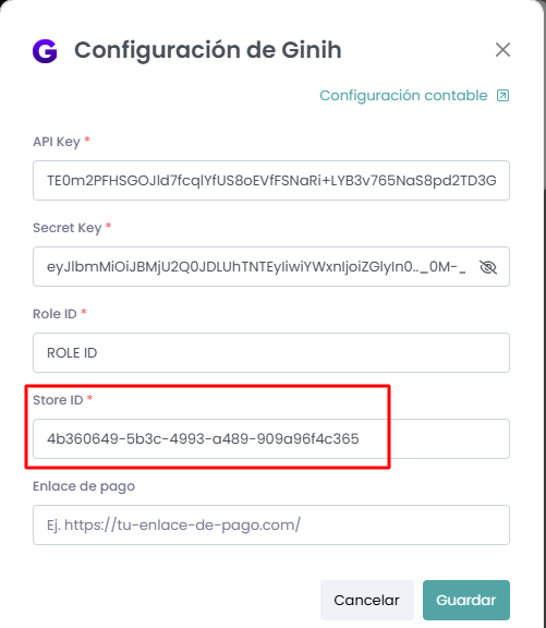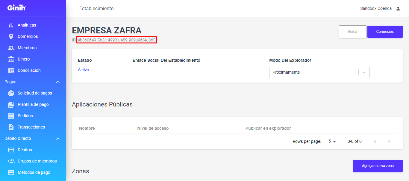 Esto nos brindará el Store ID; solo deberemos copiar los números y colocarlos en el campo correspondiente de Zafra.