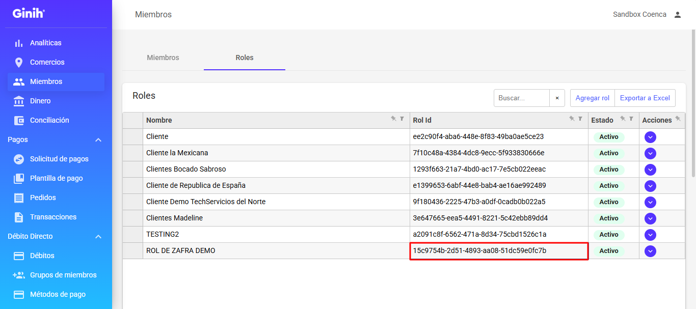 Esto nos brindará el ROL ID que deberemos copiar y pegar en el campo correspondiente de Zafra Cloud.