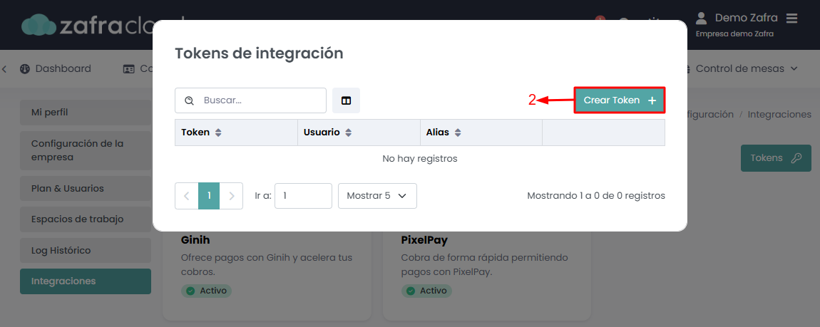Antes de continuar a realizar las configuraciones en Ginih, es necesario solicitar un token de la plataforma Zafra Cloud.