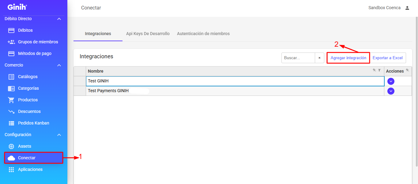 Nos dirigiremos a Conectar; luego presionaremos sobre Agregar integración.