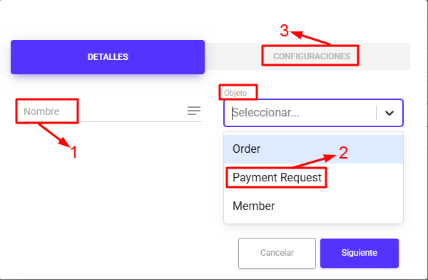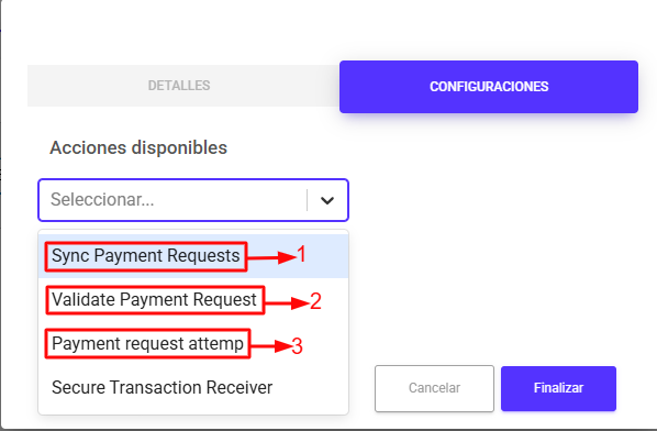 Primero deberemos configurar el Sync Payment Requests. Para esto llenaremos los siguientes campos: