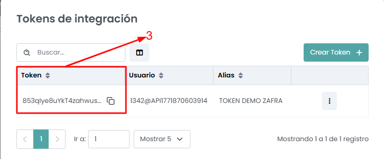 Para esto presionaremos sobre Tokens y luego Crear token.